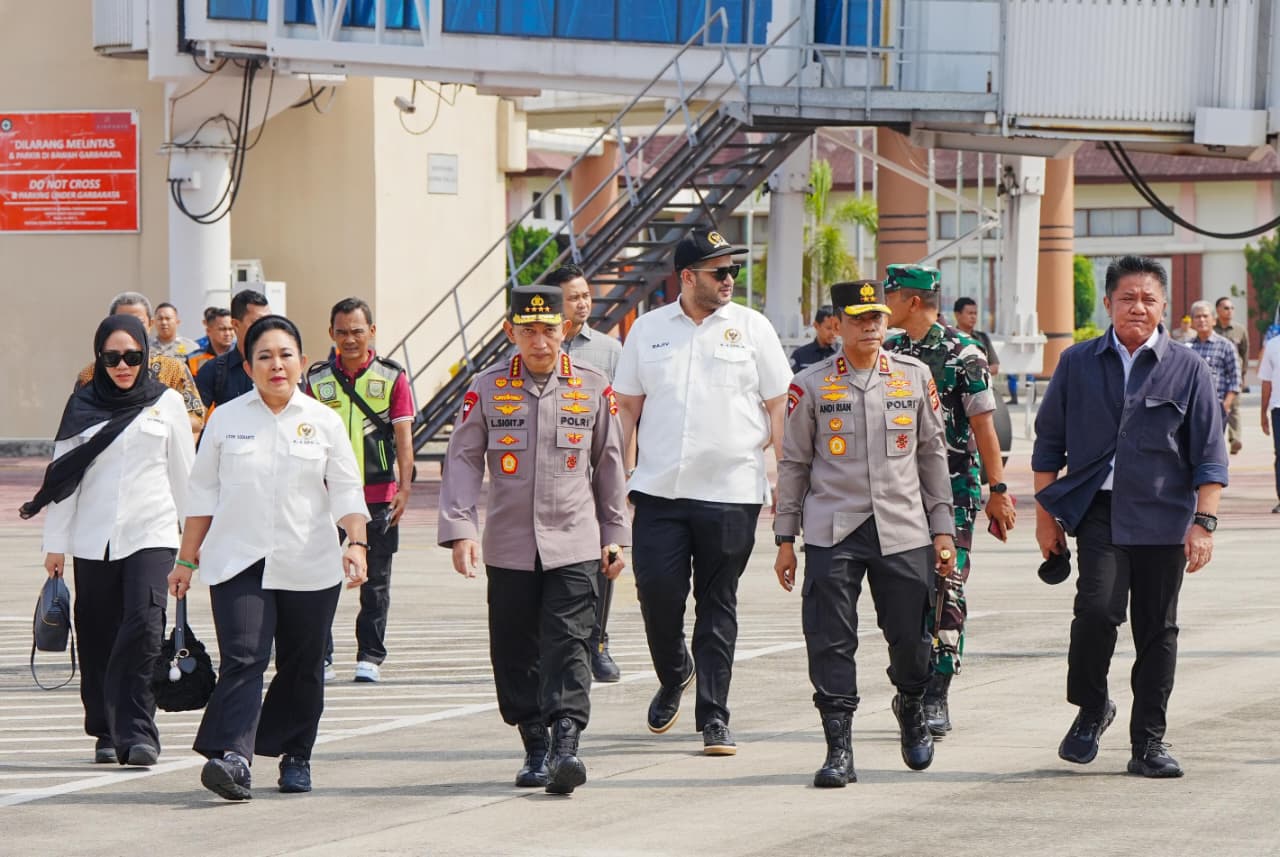 OKU Timur//Infotangerangraya.com – Kapolri beserta Ketua Komisi IV DPR RI, Menko Pangan, Kepala Badan Pangan Nasional, dan Dirut Bulog terpantau tiba di Mahmud Badaruddin II dari Palembang dilanjutkan menaiki helikopter Polri menuju Kab. OKU Timur, Prov. Sumsel pada Sabtu, 27 September 2025.