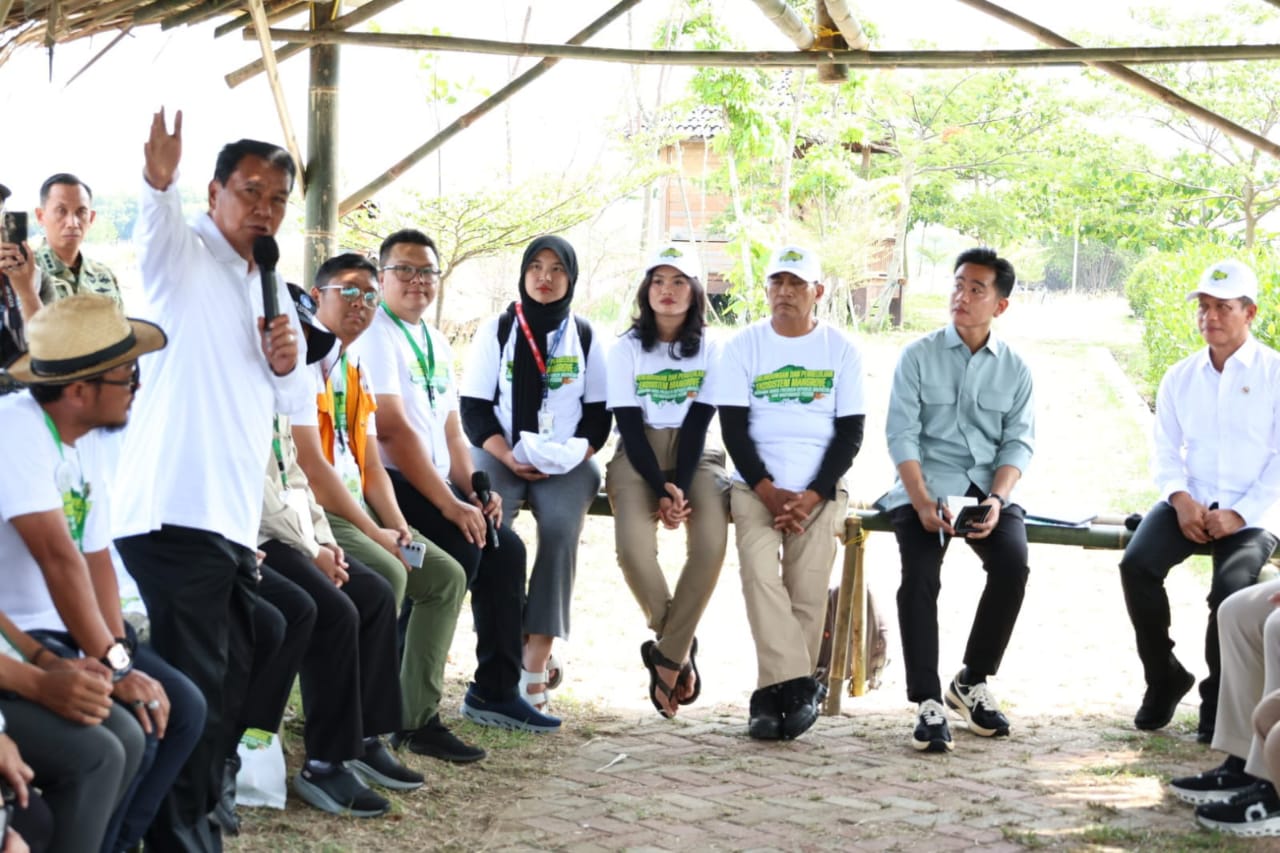 Selain menanam mangrove, Gibran juga menyempatkan diri berdialog dan menyampaikan apresiasi kepada para aktivis lingkungan yang berperan dalam pelestarian mangrove di pesisir Tangerang.